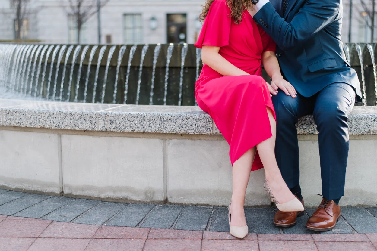 Maddie’s bright pink dress and Dima’s dashing navy suit were perfect for the architecture and overall feel of their session. I hope you enjoy their engagement photos!